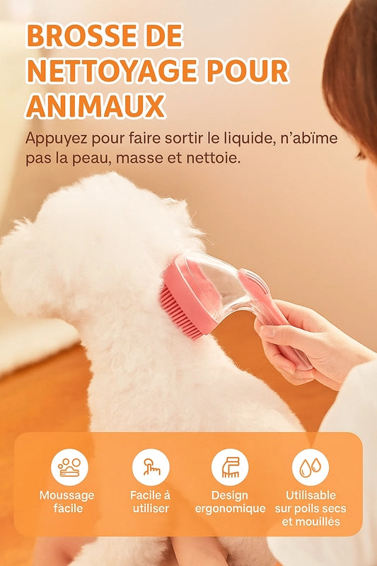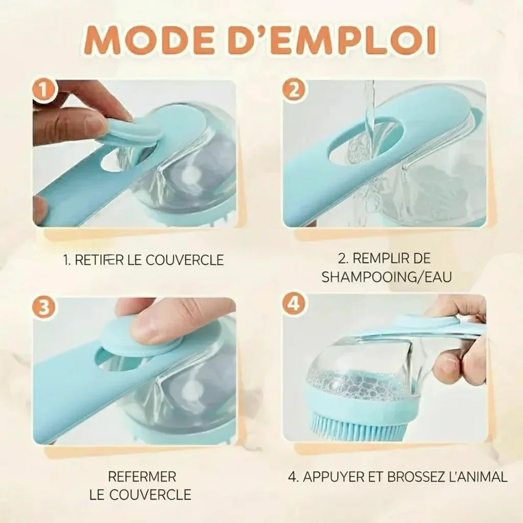 Fini la corvée du bain ! Cette brosse innovante distribue le shampoing et masse votre animal en même temps. Un lavage doux, rapide et efficace pour un pelage impeccable et un compagnon heureux. Simplifiez-vous la vie !